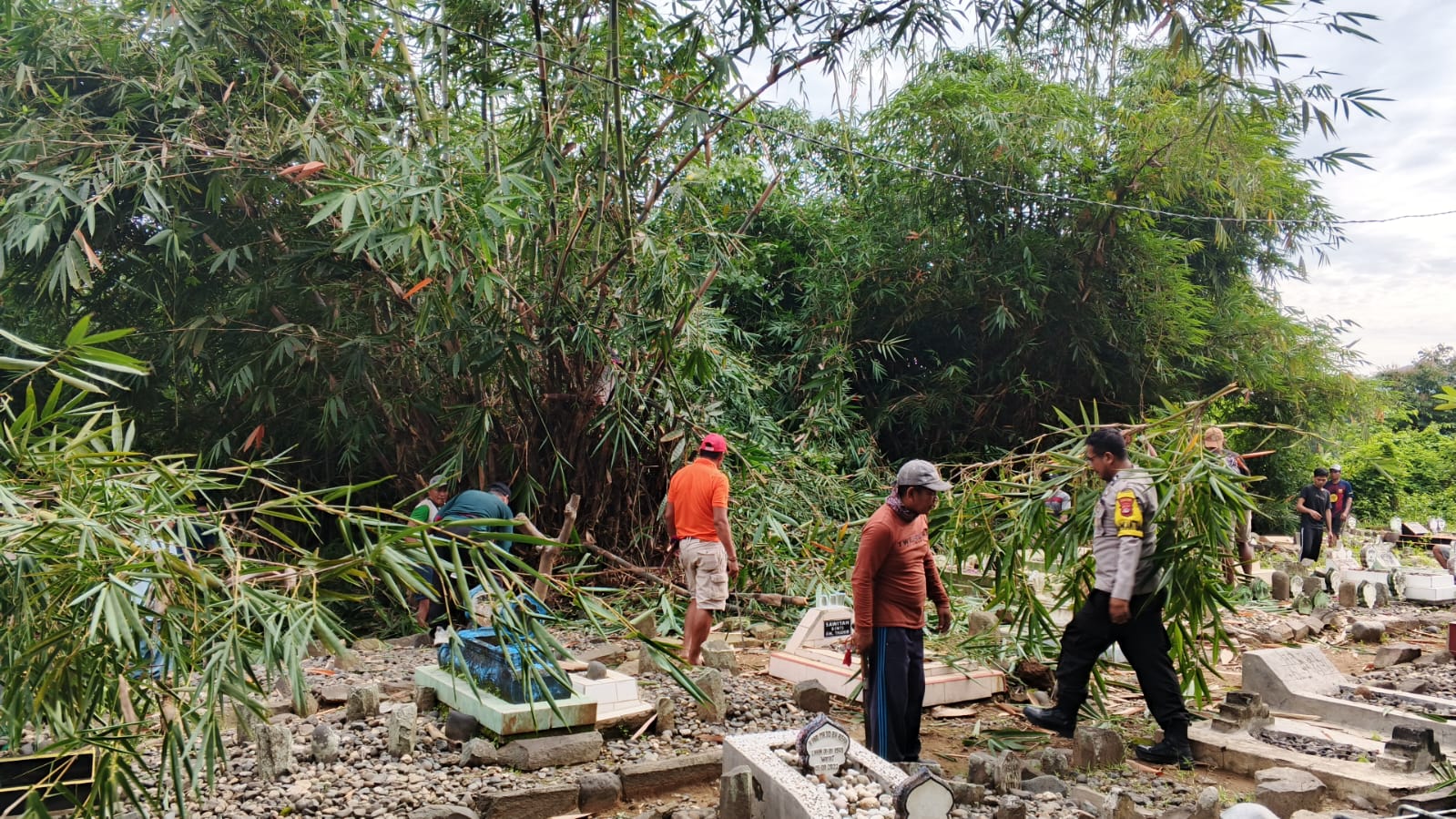 Gotong royong ini melibatkan Bhabinkamtibmas, warga setempat, serta Agen Gotong Royong Kelurahan Menala, yang dengan penuh semangat bahu-membahu membersihkan area pemakaman.