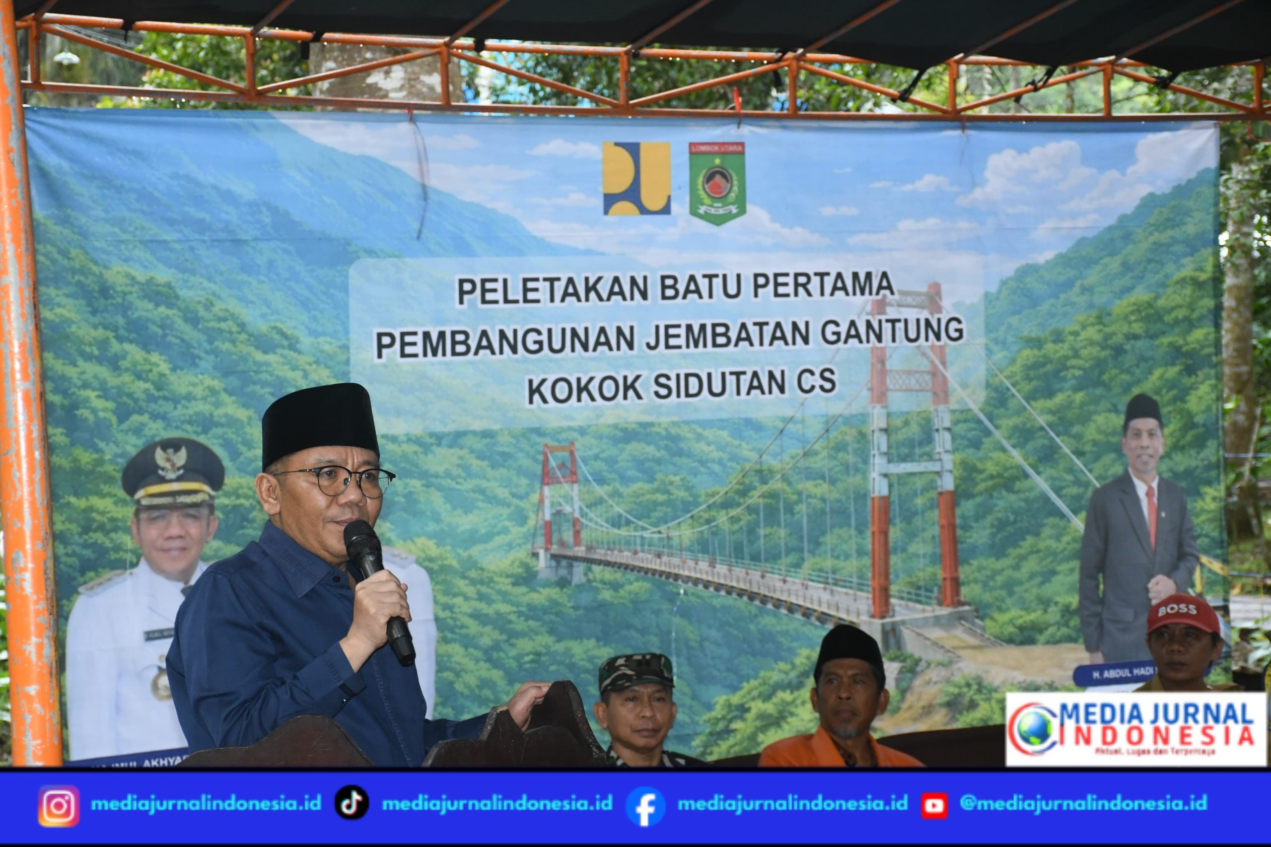 Lombok Utara, Mediajurnalindonesia.id – Pembangunan jembatan gantung Kali Sedutan yang menghubungkan Desa Sambik Bangkol, Kecamatan Gangga, dan Desa Santong, Kecamatan Kayangan, Kabupaten Lombok Utara, resmi dimulai. Proyek tersebut ditandai dengan peletakan batu pertama pada Selasa (28/4/2026).