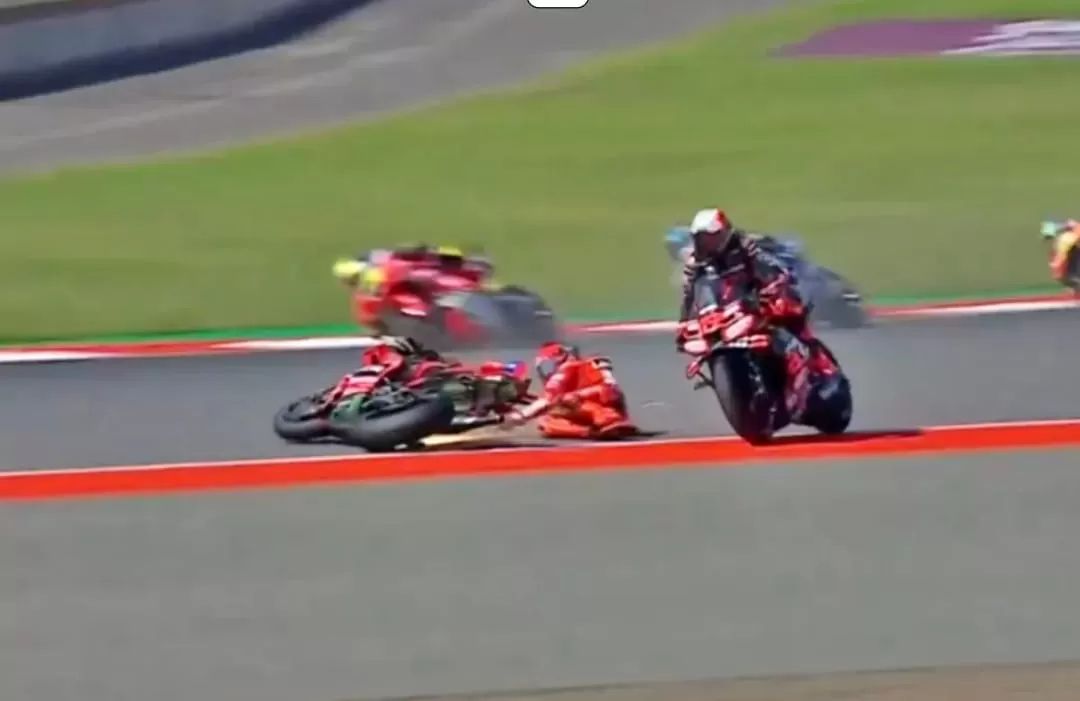 sementara Bezzecchi juga kehilangan kendali dan tergelincir ke gravel, kedua pebalap dinyatakan tidak dapat melanjutkan balapan.