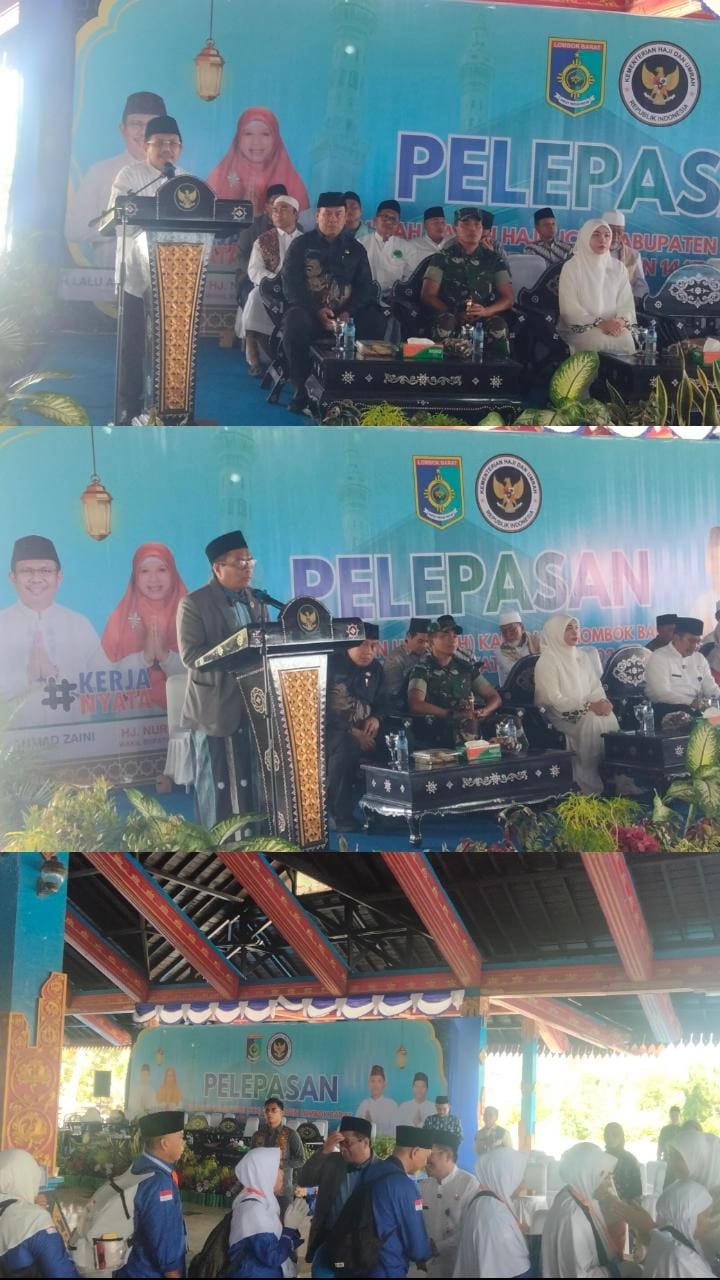 Kepala Kementerian Haji Lombok Barat, H. Suparlan, dalam sambutannya menyampaikan rasa syukur atas kesiapan seluruh jamaah yang akan berangkat menunaikan ibadah haji. Ia menyebutkan bahwa total jamaah yang diberangkatkan berjumlah 387 orang, didampingi oleh 6 petugas haji, sehingga total keseluruhan mencapai 393 orang.