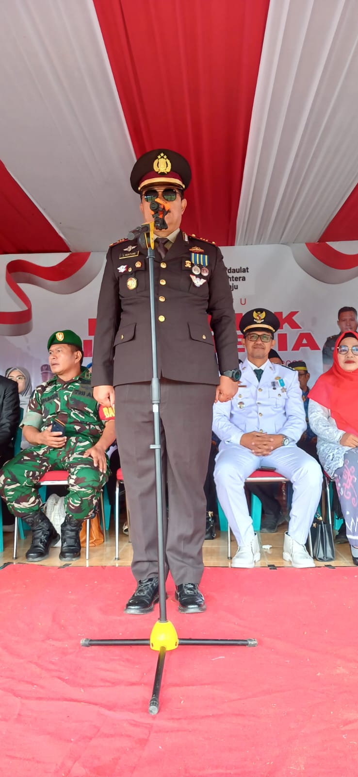,” Sebagai Bangsa yang besar marilah kita sama-sama menghargai dan mencintai bangsa ini yang telah diperjuangkan oleh pendahulu kita yaitu dengan ikut serta dalam mensukseskan pembanguan yang telah dicanangkan oleh pemerintah , semoga warga masyarakat ke depan akan lebih sejahtera ,” Imbuh sang Inspektur.