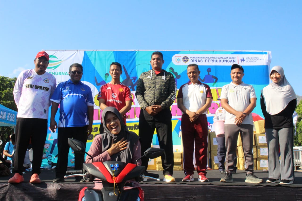 Alhamdulillah kali ini kita dapat berkumpul di tempat ini untuk melaksanakan acara Car Free Day yang bertepatan dengan hari Perhubungan, kami dari dinas perhubungan kabupaten Sumbawa Barat menyiapkan banyak sekali hadiah door prize yang anggarannya disediakan dari APBD Kabupaten Sumbawa Barat hadiah utama ada satu unit sepeda motor ada dua unit sepeda kemudian ada beberapa dan banyak sekali hadiah hiburan lainnya ada juga beberapa yang disumbangkan dari BPR NTB.”Ujarnya.